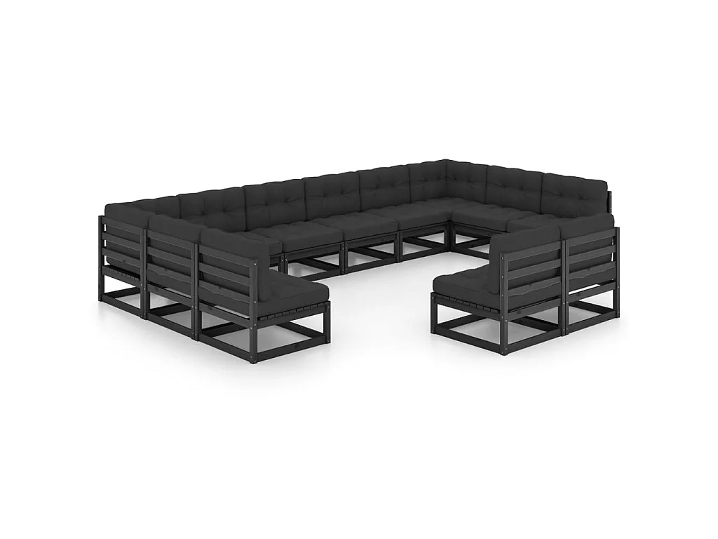 Salon de jardin 12 pcs avec coussins Noir Bois de pin massif 14