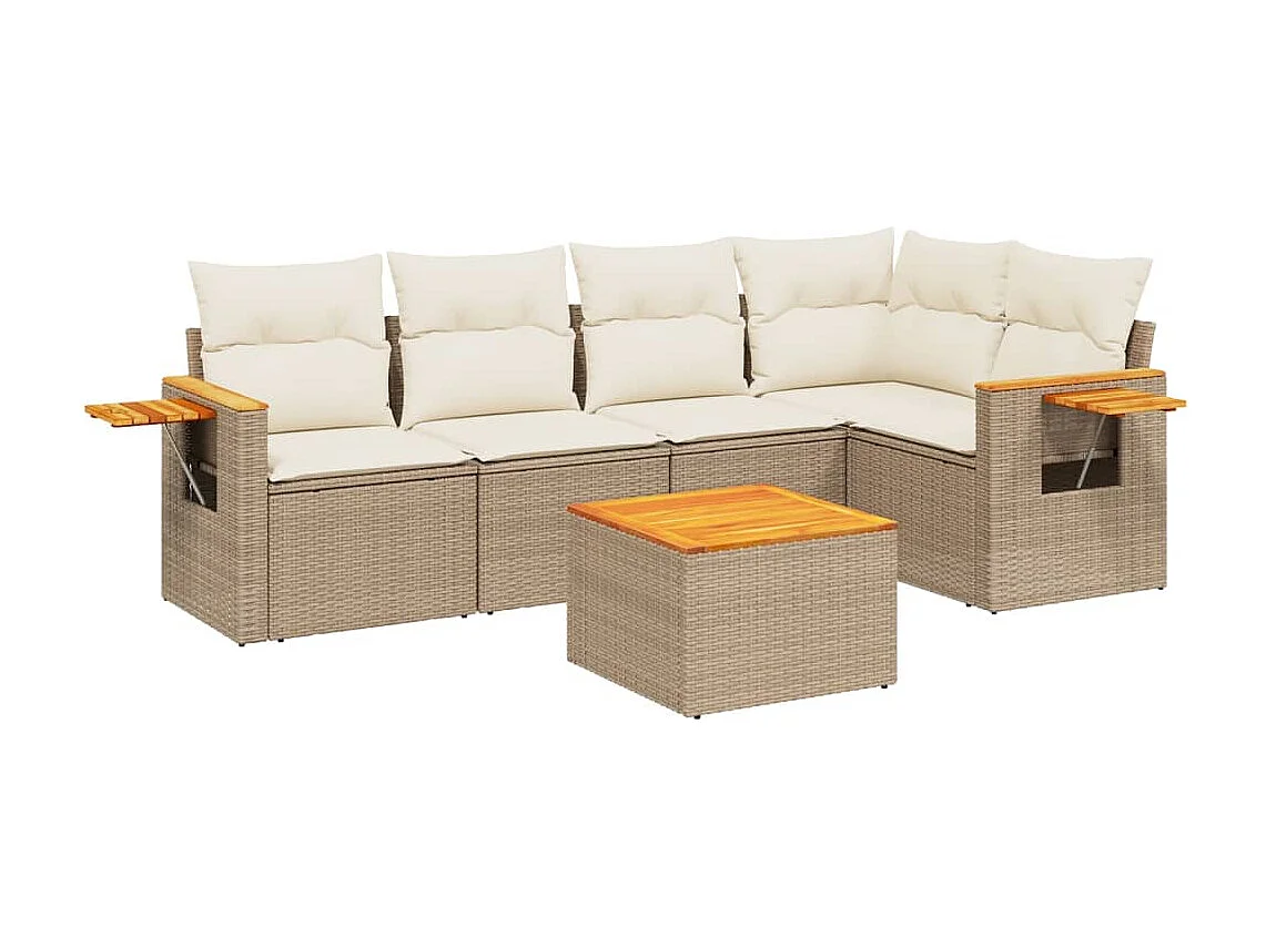 Salon de jardin avec coussins 6 pcs beige résine tressée