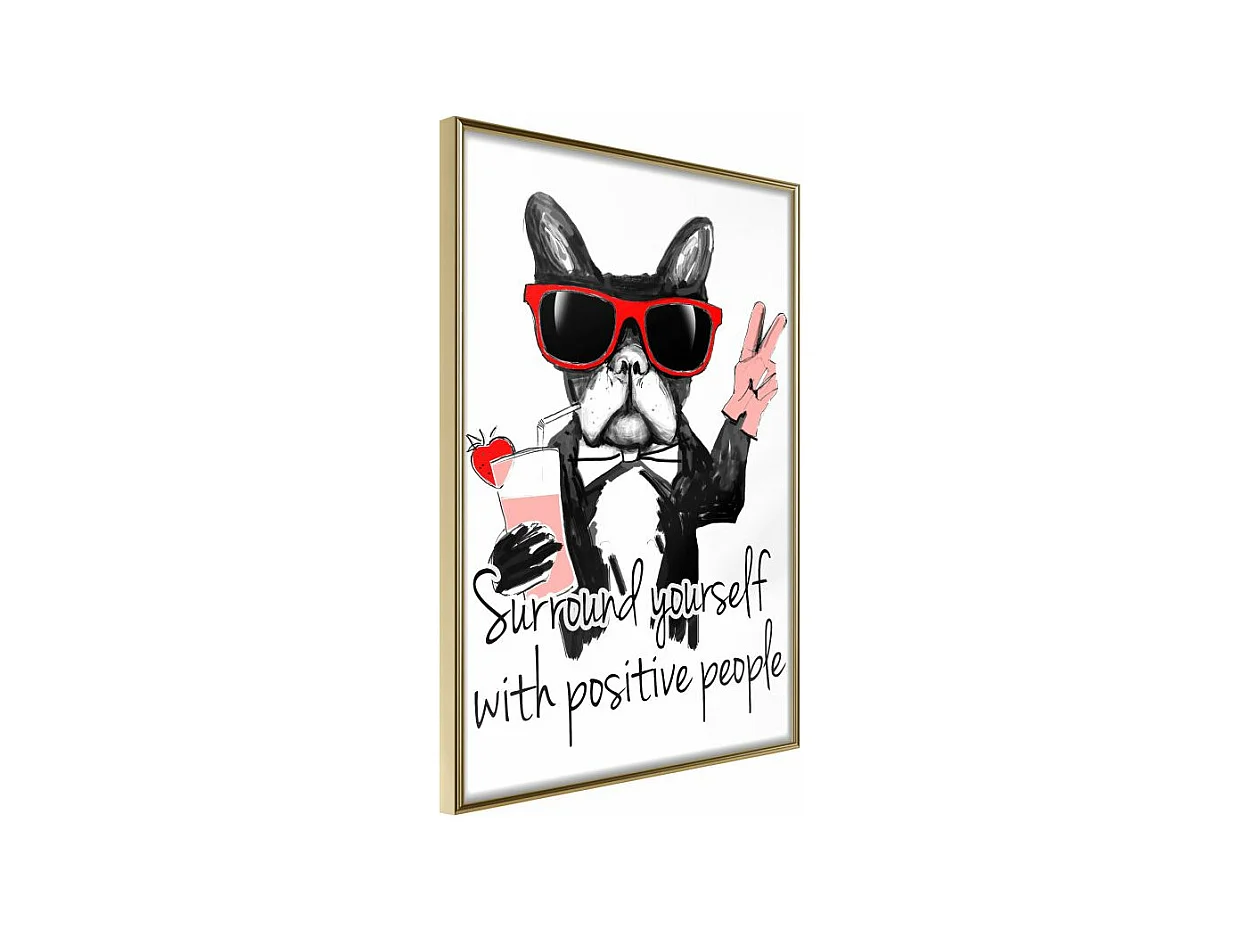 Affiche Murale Encadrée "Positive Bulldog" 21 x 30 cm Or