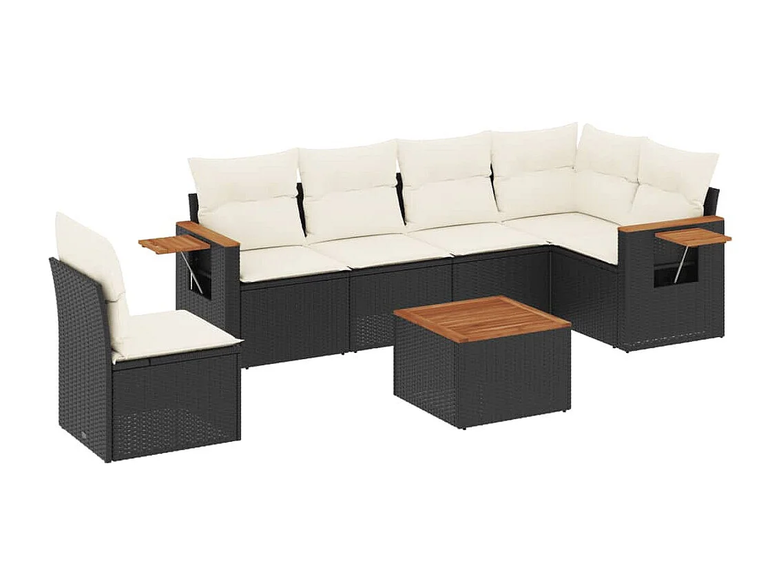 Salon de jardin 7 pcs avec coussins noir résine tressée