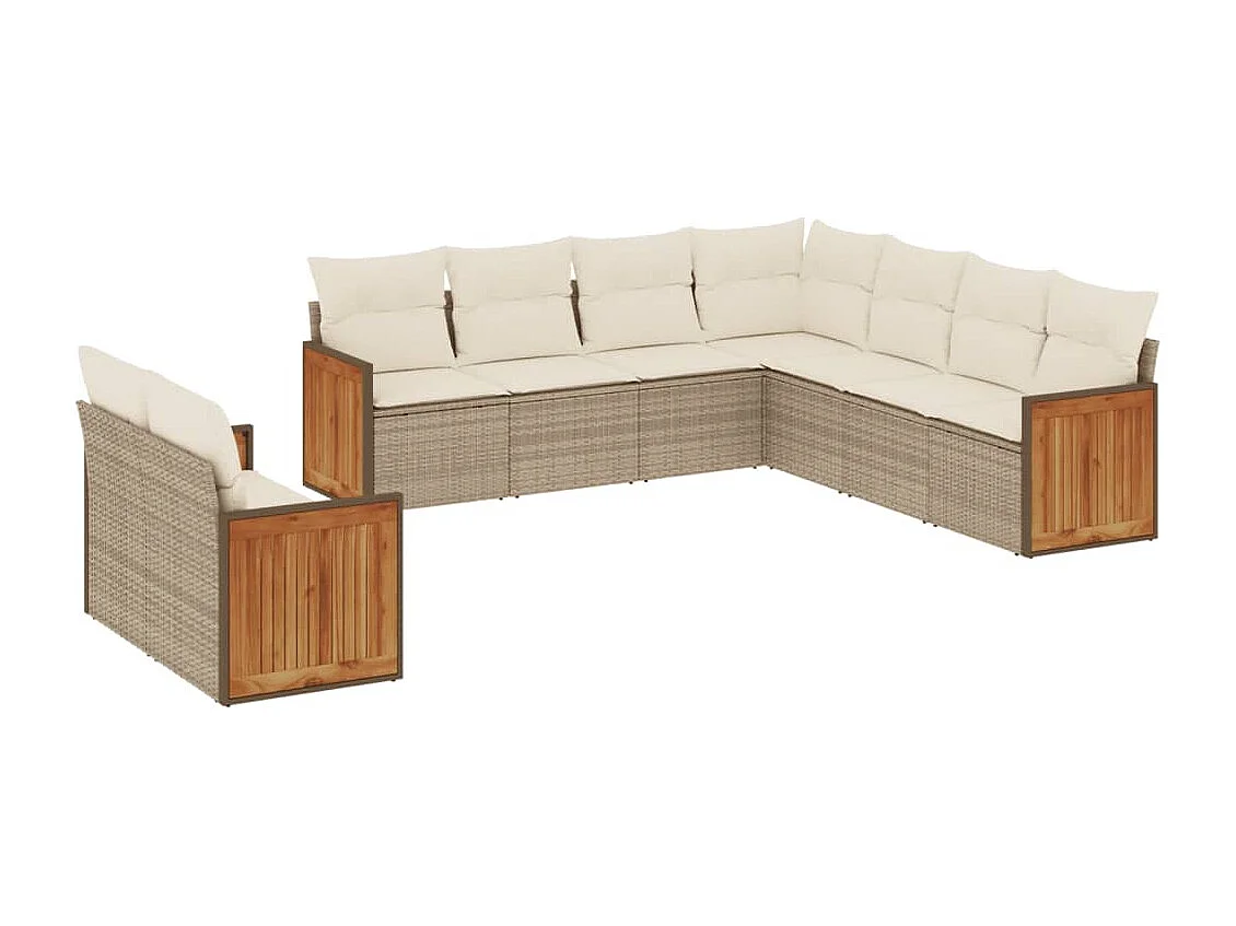 Salon de jardin avec coussins 9 pcs beige résine tressée