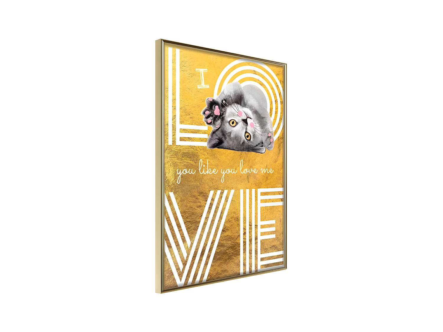Affiche Murale Encadrée "Cat Love" 40 x 60 cm Or