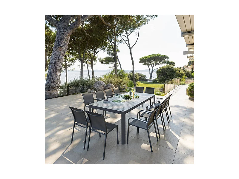 Table de jardin en aluminium gris Graphite Paradize - 12 places - Hespéride